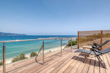 Cet appartement est unique sur le secteur. Vous profiterez de son rooftop avec une vue imprenable et de ses équipements : - cuisine équipée - climatisation partout - 3 chambres - rooftop d'exception - séjour avec baie vitrée en accordéon pour une grande ouverture - 2 places de parking privatives Et surtout de sa vue mer !!!